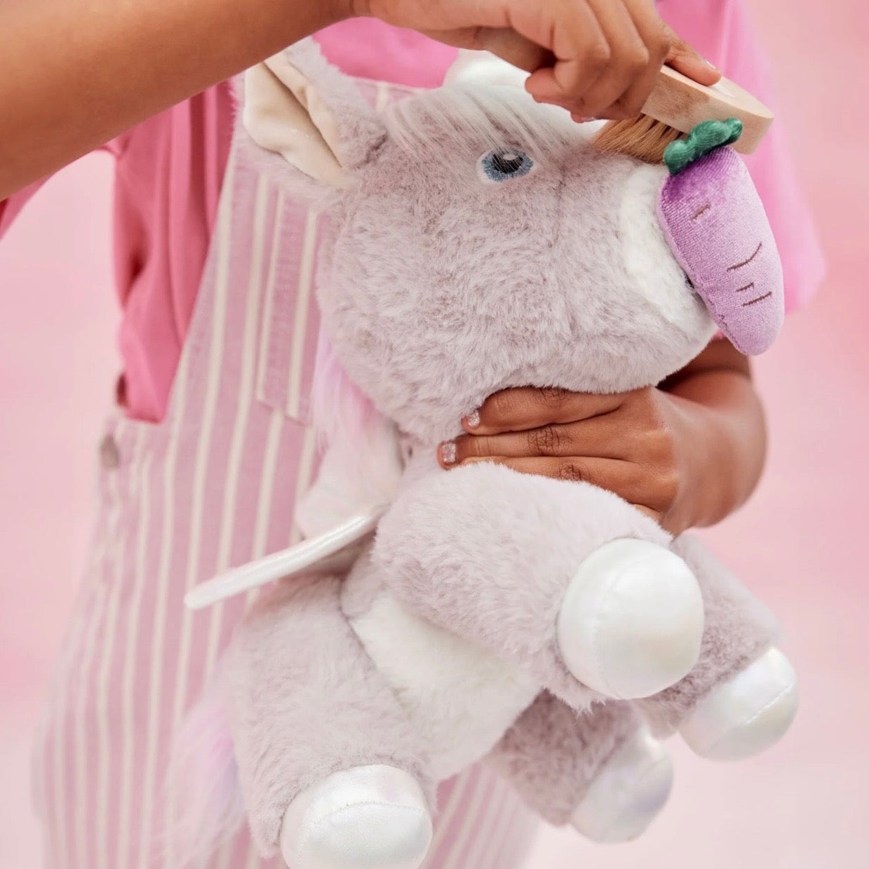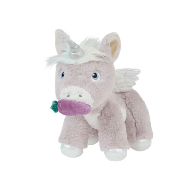 Crafted from the softest fabric, Glimmer is as cuddly as a cloud, and ready to make dreams come true! The magnetic mouth can hold their velvet carrot or carry their baby unicorn sidekick, making every play session a bit more enchanting.