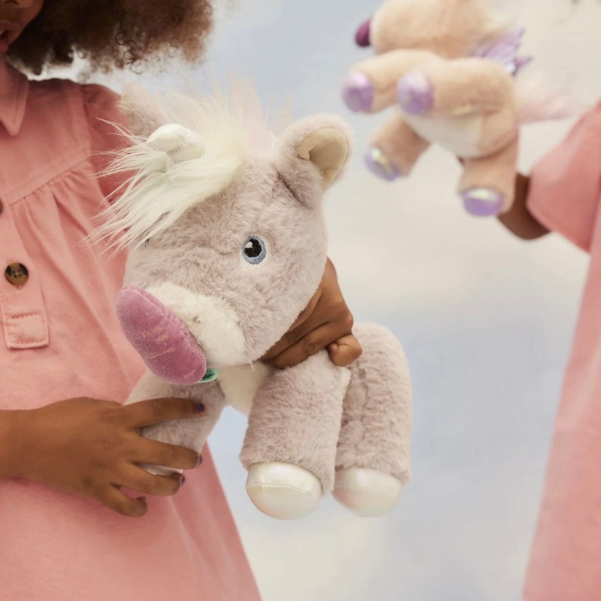 Fully posable with a head that twirls 360 degrees, Glimmer is ready to dazzle and delight. The iridescent accents on the hooves and wings, velvet inner ears, and plush rainbow mane and tail add an extra dose of unicorn magic.